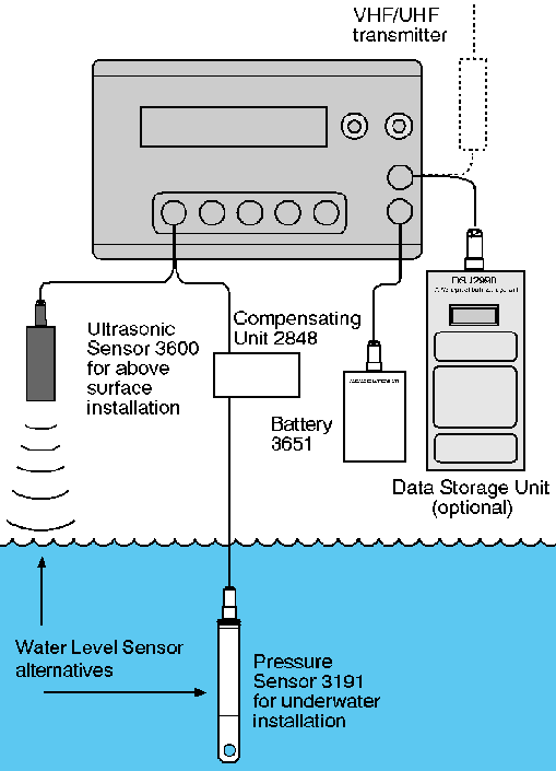 Stationerna kan vare av mycket enkel typ t.ex. med bara en eller ett par givare och ett displayinstrument eller mera avancerad med flera givare, ev. både hydrologiska och meteorologiska, samt intern datalagring, solceller med batteribackup, och radio/tele överföring av uppmätta data. Även uppringt talsvar är möjligt.