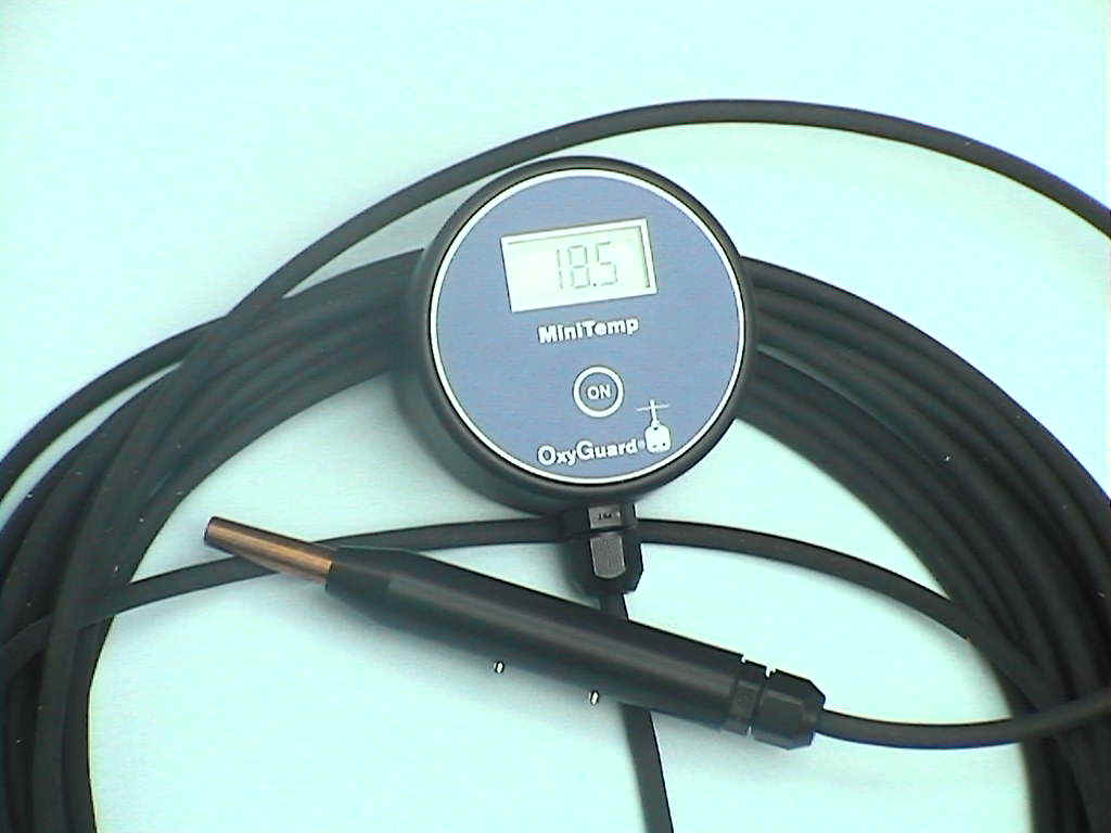 • Exempel på direktvisande temp.mätare med kort kabel är den nya Oxy-Guard Maxi-Temp. -5/+45 +/- 0,1 oC. 3 m kabel som std. Valfri kabellängd som tillval. Helt vattentät